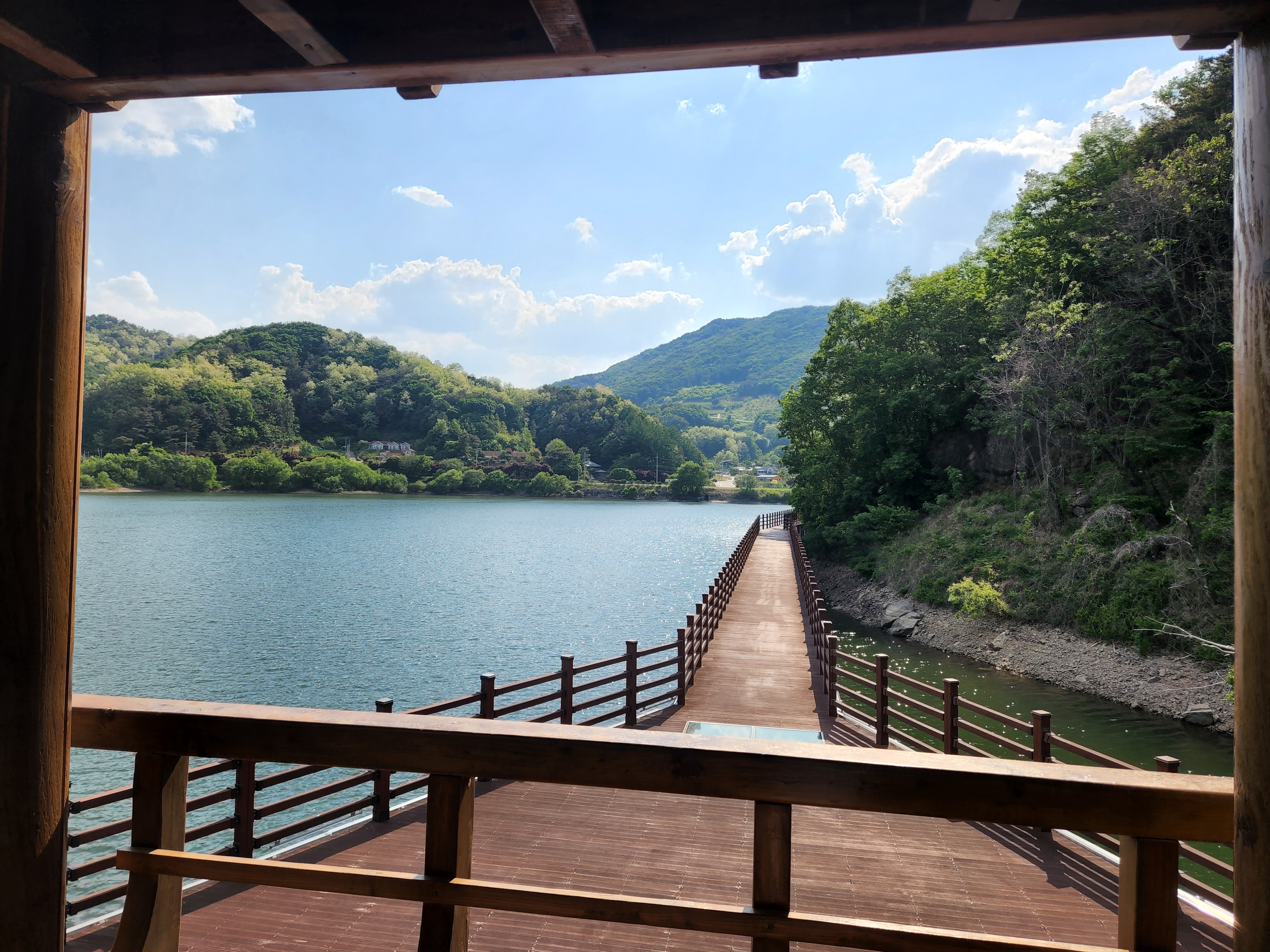 의외로 사람들이 잘 모르는 장소. 배점 저수지 데크길. 나의 최애 산책길이다. 봄, 여름, 가을, 겨울 언제가도 좋다. 이건 작년 6월쯤 찍은 사진이다. 글램핑장 코 앞에 있어서 걸어서 가볍게 산책하는 것을 추천한다.